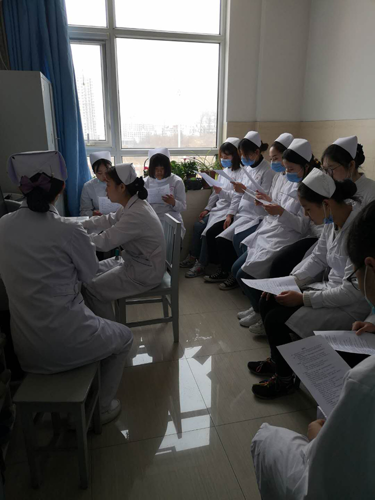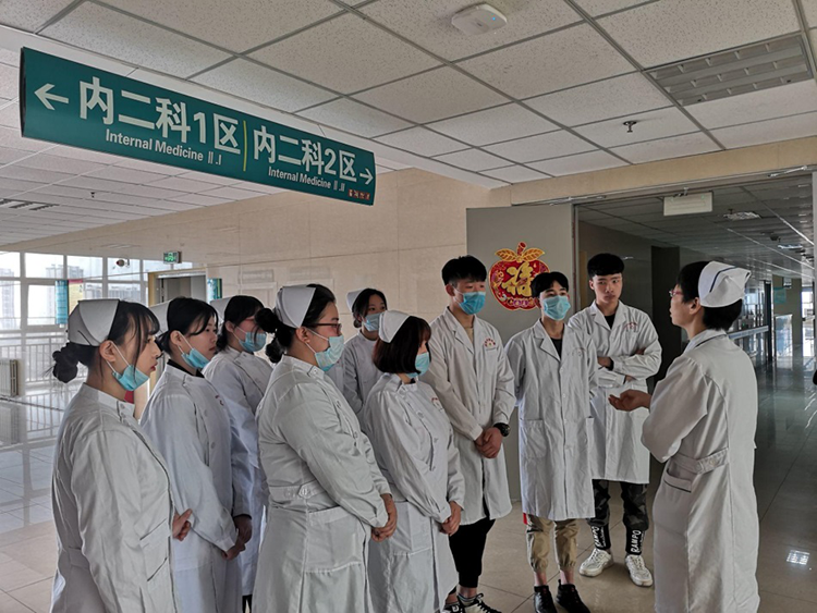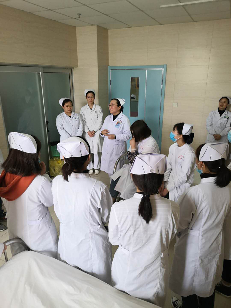 马丽娜与王春霞主任交流此次见习的内容,由各科室护士长分别带领学生进入相应的科室并给学生讲解科室文化及本科室的疾病护理知识和实践操作。