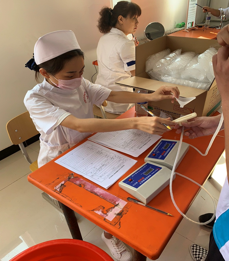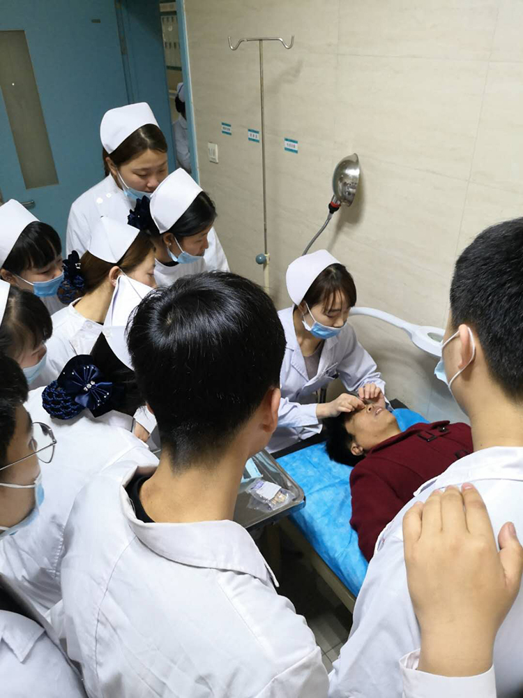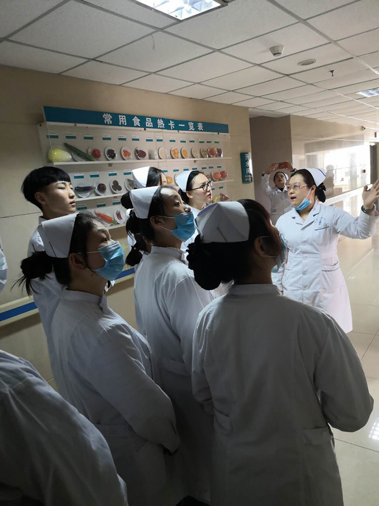 在内分泌科,学生看到了具有科室特色的仿真食物热量展示区,了解了生活中常见食物的热卡含量,认识到食疗对内分泌患者的重要性;在五官科,学生认识了新兴的眼科仪器——干眼雾化综合治疗仪,并很幸运的观摩到了干眼雾化治疗和睑板腺疏通及按摩术,学习了新的知识;在肛肠外科,同学们学习了肛肠科患者的术后护理,实际观察到了病人术后的真实表现并对理论知识有了实际的概念……见习中,学生们兴致勃勃,专心致志的听护士长们的讲解,感慨颇多,收获颇多!